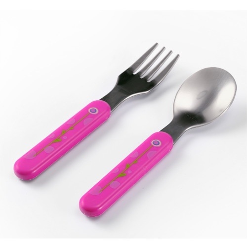 Ложка и вилка из нержавеющей стали. Идеальные для использования на этапе, когда ребенок начинает есть самостоятельно. Специально подобранные материалы обеспечивают высокое качество и длительное использование